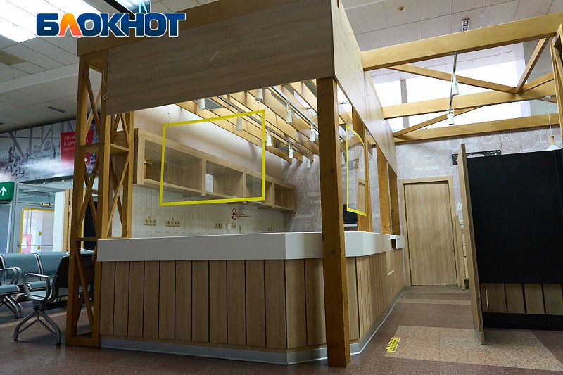 Авиакасса, точки продажи товаров в дорогу, аптека, кафе, упаковка багажа не работают, но ждут своего часа.