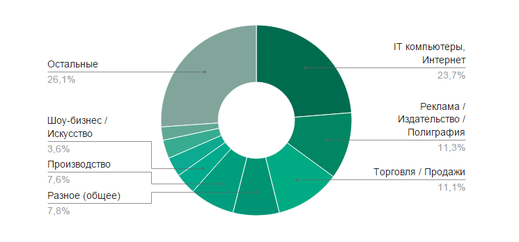 Среди отраслей, с наибольшим количеством активных предложений, можно выделить: