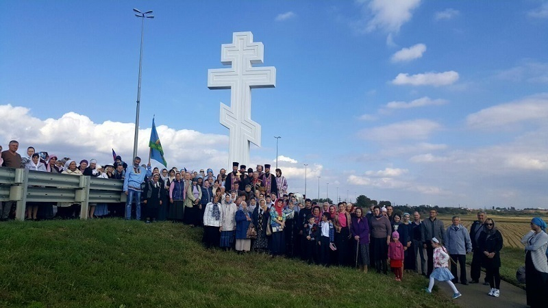Около 30 машин и два микроавтобуса тронулись в 10 часов от храма Рождества Христова. В течение нескольких часов они побывали на четырех Поклонных крестах, которые стоят на въездах в город с каждой стороны света. Это кресты возле Яблоновского моста на улице Захарова, близ хутора Ленина, на Ростовском шоссе и в станице Елизаветинской. Возглавляла колонну передвижная звонница с колоколами.