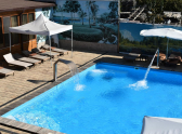 - На территории есть 2 баcсейнa c подогревом 30-35 градусов. Основной бассейн 10х20м оснащен гидромассажем, водопадом и красивой подсветкой.