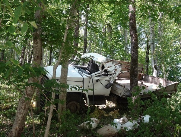 По словам очевидцев, бортовой ГАЗон ехал со стороны чайных плантаций. Водитель свернул с асфальтированной дороги в колею в сторону леса. Грузовик перевернулся, но удержался за деревья. Это спасло автомобиль от падения в обрыв.