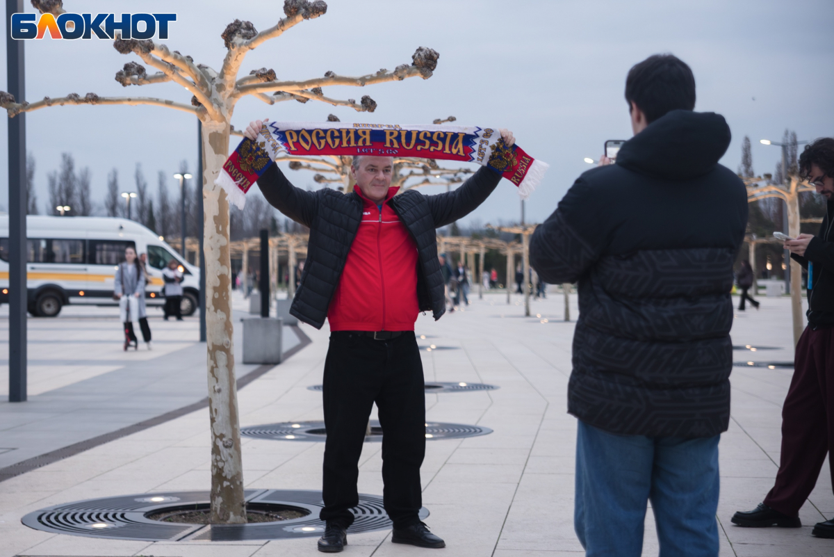 Сборная России 27 марта сразилась со сборной Никарагуа в товарищеском матче на стадионе «Ozon Арена» в Краснодаре. Толпы болельщиков шли на игру с флагами и шарфами, веря в победу родной команды. Показываем, какая обстановка царила в парке Галицкого перед матчем.