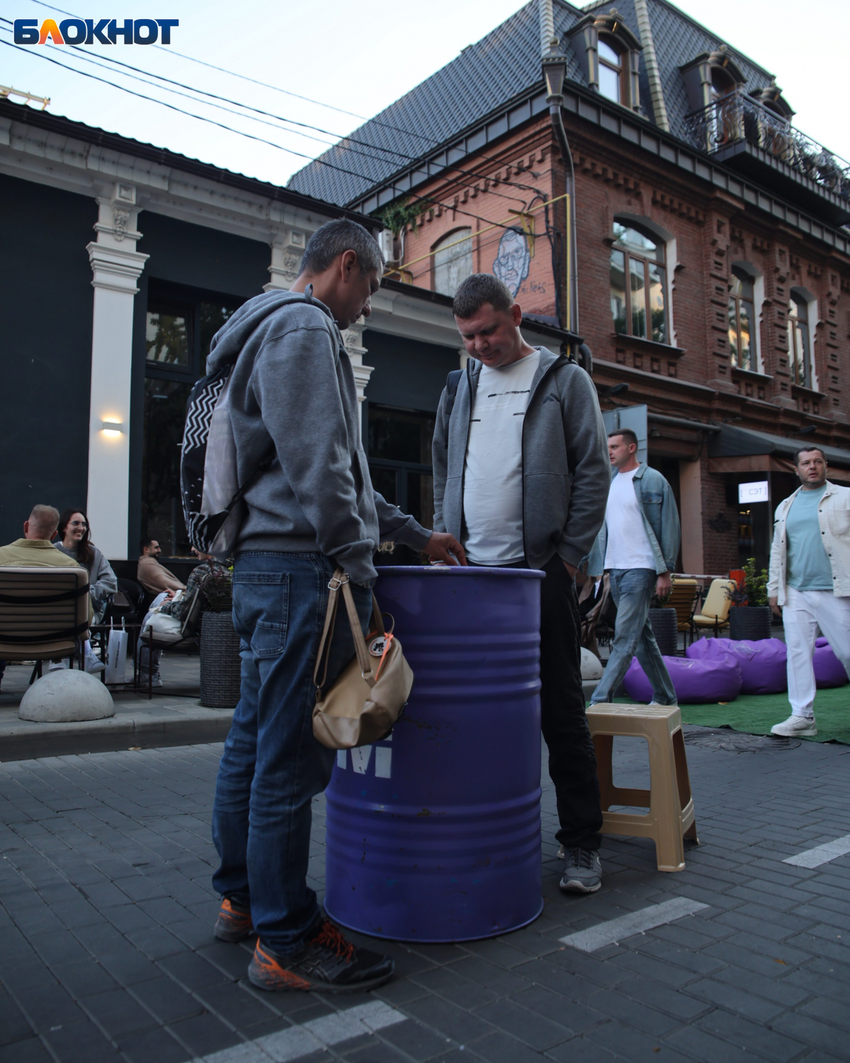 Те, кто успел насладиться творчеством, могли сыграть партию в шахматы и шашки. Доски установили на импровизированных столиках, сделанных из бочек. А ещё краснодарцам предлагали отдохнуть и расслабиться в креслах-мешках.