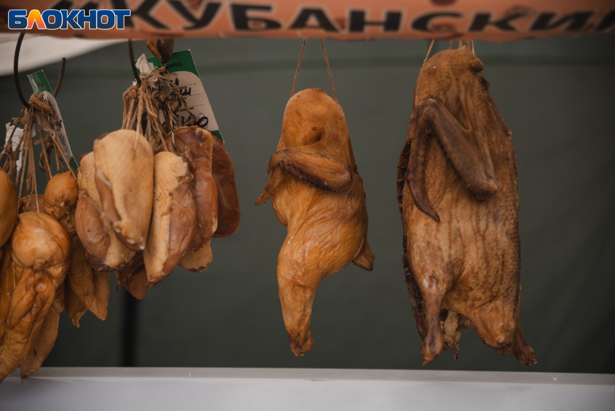 Нельзя не отметить готовую мясную и рыбную продукцию. На ярмарке краснодарцы могли приобрести кубанский рулет (758 за кг), свиную шею (875 рублей за кг) и даже язык в желе (935 рублей за кг). Также продавцы предлагали разный вид сыра сулугуни, килограмм которого стоил 830 рублей.
