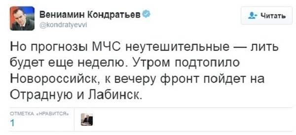 Губернатор Вениамин Кондратьев прокомментировал ситуацию с подтоплениями в Краснодарском крае.