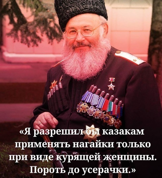 «Нечего народ пугать, такой традиции не было, - пишет Громов. - Я разрешил бы казакам применять нагайки только при виде курящей девушки и женщины. Пороть до ус.... Чтоб не повадно было. Жди от них детей». @bloknot_krasnodar.ru
