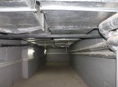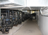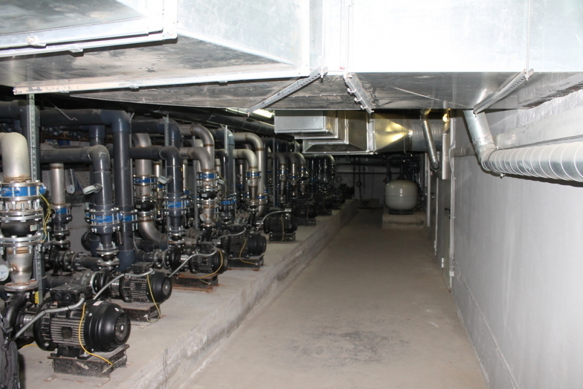 По крутой железной лестнице мы спускаемся вниз, где нас встречают длинные бетонные коридоры, а затем комната с множеством труб и баков. Здесь, 110 насосов работают на то, чтобы над землей взлетали в небо водяные струи, создавая особенный рисунок и завораживая зрителей. В аппаратной расположены также несколько баков с кварцевым песком, в них очищается вода фонтана. Стоит отметить, что система водоснабжения фонтана — закрытая, если какое-то количество воды убыло, его восполняют из специально подведенного к фонтану водопровода.