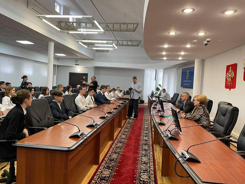 А в этот теперь ребята попали отправились на экскурсию в городскую Думу. Их встретила председатель Вера Федоровна Галушко. Она рассказала об истории городской Думы Краснодара, депутатской работе в округах, принимаемых думой решениях.