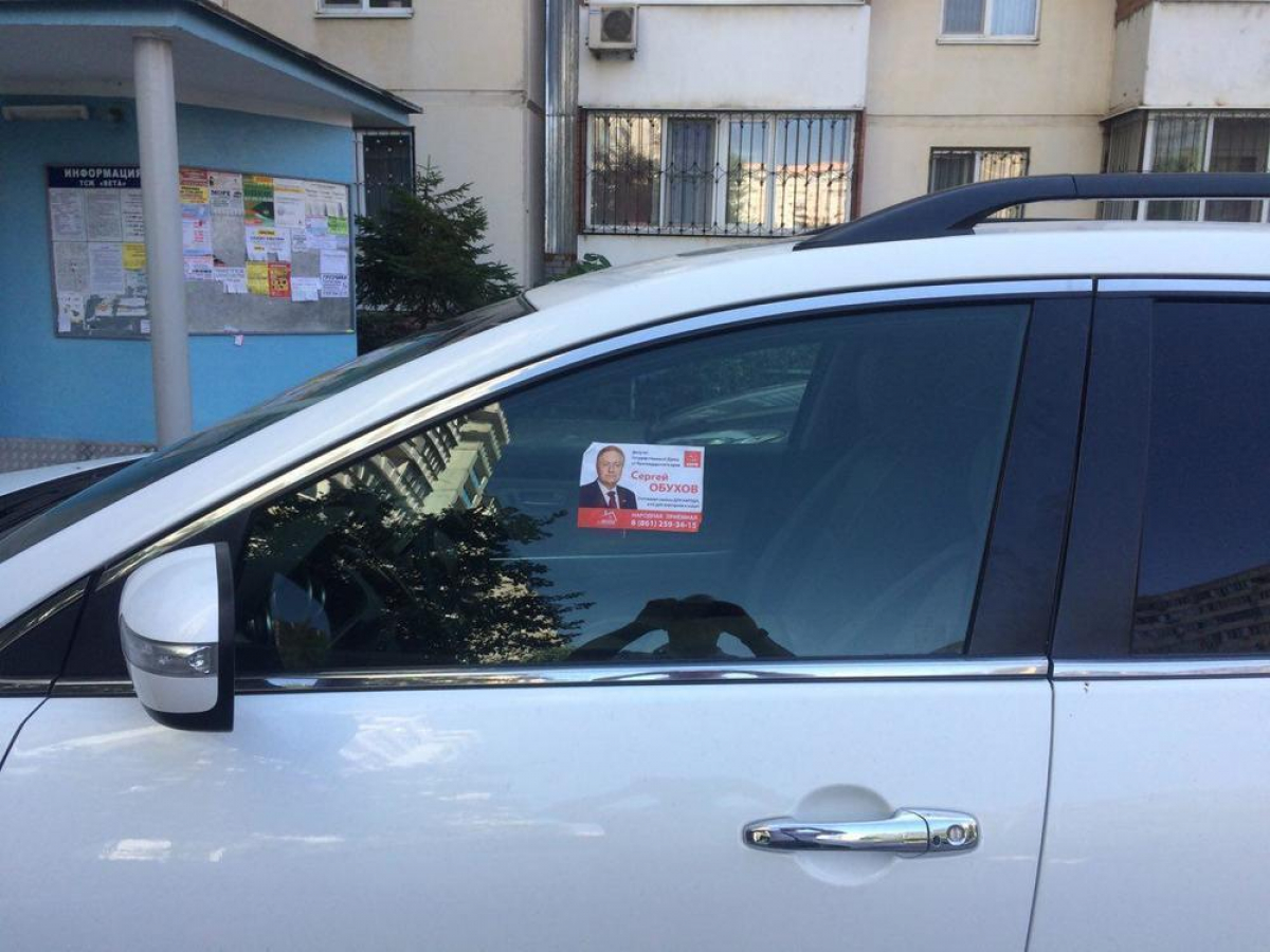 Листовки с портретом кандидата от КПРФ Сергея Обухова оказались на машинах без согласия владельцев.