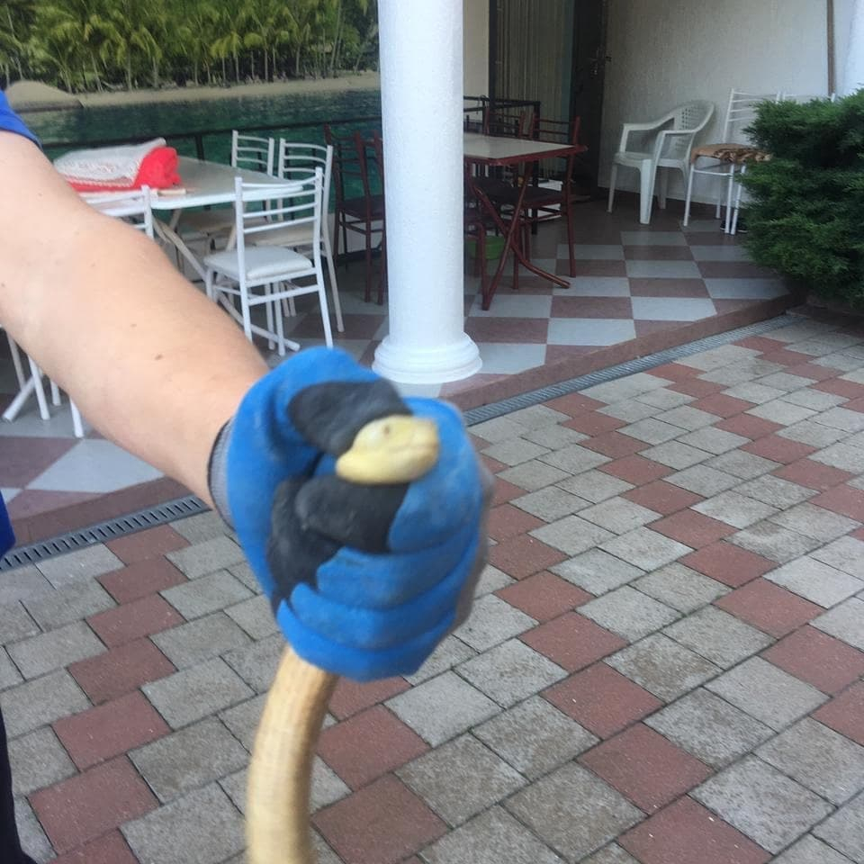 Как написали спасатели города-героя в своем телеграмм-канале novosti_novoross, им позвонила обеспокоенная женщина и сообщила, что в пансионат, в туалетную комнату пробралась змея. Самостоятельно поймать рептилию женщина не смогла.