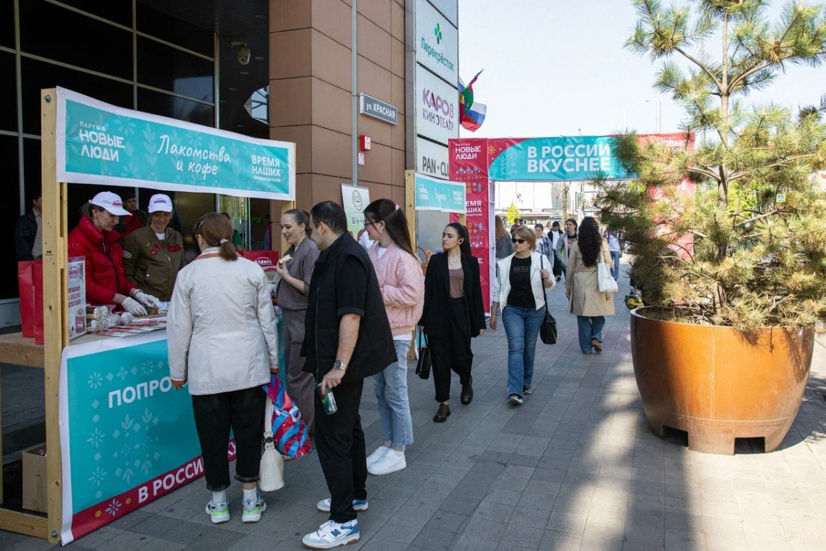 В центре Краснодара развернулся настоящий гастрономический праздник — выставку «В России вкуснее!» провела партия «Новые люди». Гости фестиваля пробовали сыры, колбасы, свежую выпечку, мёд, чаи и другие деликатесы от кубанских производителей. Всё это можно было сравнить с зарубежными аналогами.