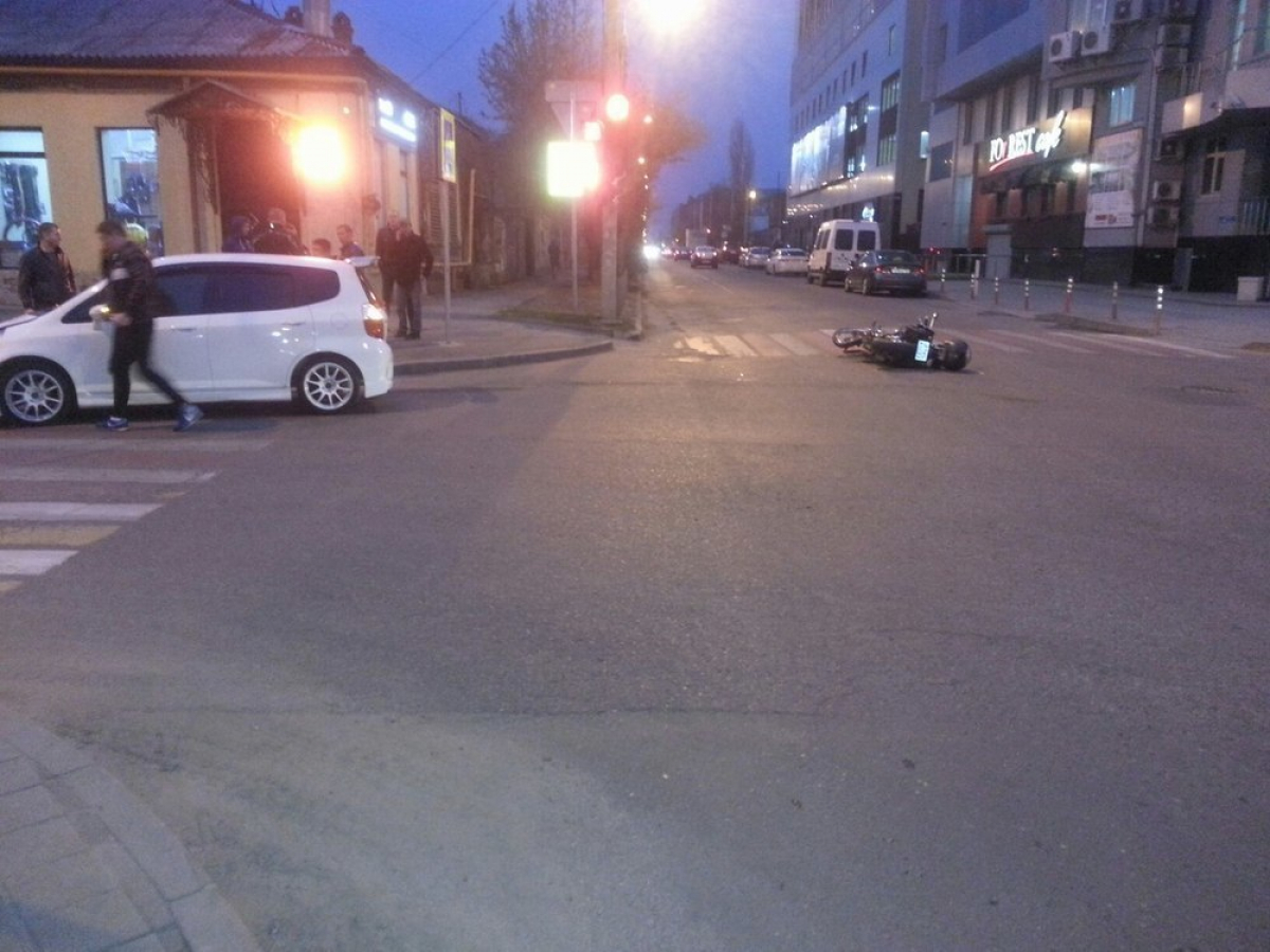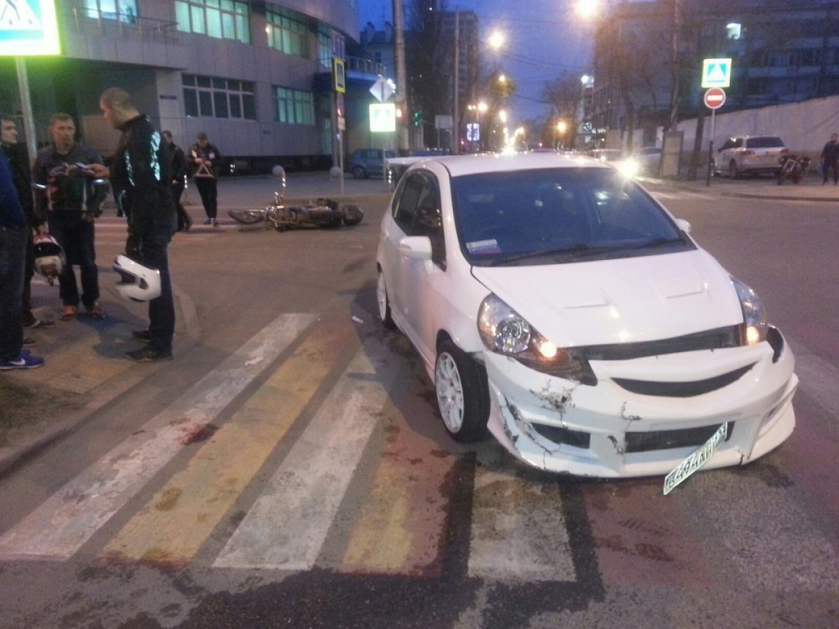 Вчера вечером, 30 марта, в центре Краснодара произошло ДТП с участием мотоциклиста. Как рассказали «Блокноту Краснодар» очевидцы, Yamaha Virago и легковушка Honda столкнулись на пересечении улиц Красноармейской и Кузнечной. Автомобиль сбил мотоциклиста практически в центре перекрестка. Оба водителя утверждают, что двигались на зелёный свет.