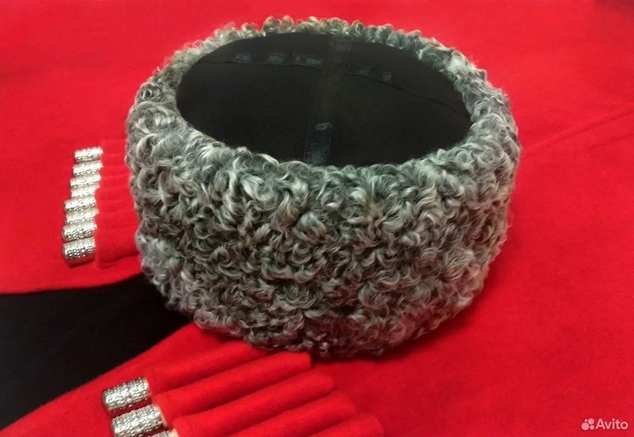 Каракуль ценился за плотную структуру и способность сохранять тепло, а характерный завиток меха делал каждую шапку визуально уникальной. Сегодня такие кубанки чаще всего используются в реконструкциях, парадной форме и как сувениры с выраженной региональной идентичностью. Цена за такой аксессуар - 5 500 рублей.