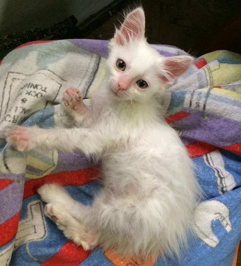 Малыш Маркус был самым замученным и еле подавал признаки жизни. Неравнодушный волонтер Елена повезла его к знакомому ветеринару.