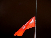8 мая, в 22:00 на Театральной площади Краснодара водрузили копию Знамени Победы.