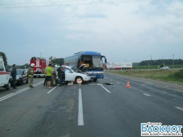 Вечером 17 июля на автодороге «Каваказ» Краснодарского края водитель «Cherry» совершая обгон, допустил боковое столкновение с автобусом.