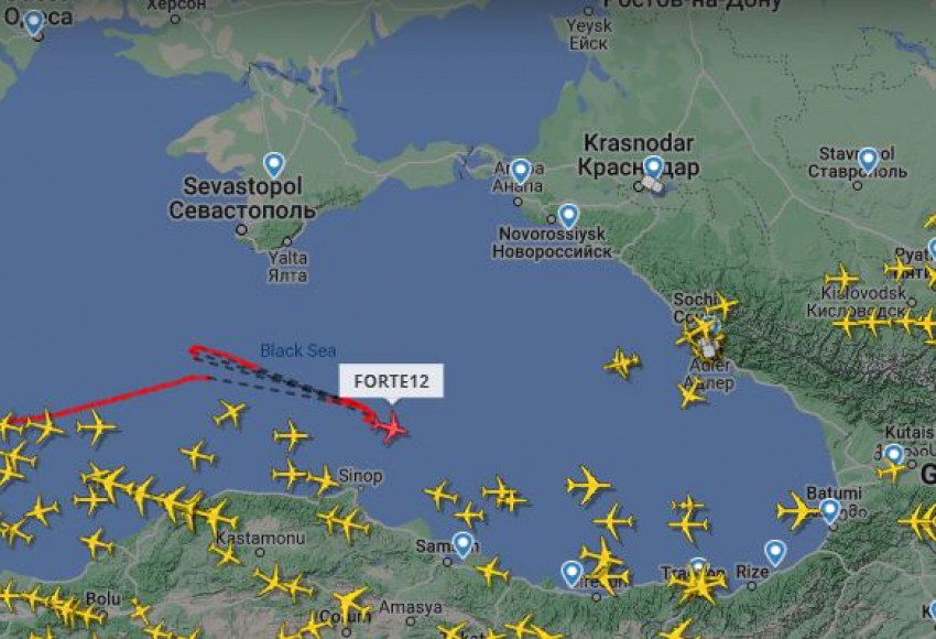 Согласно сервису круглосуточного наблюдения авиаполётов «flightradar24», военный самолет, который на радарах обозначается как «Forte 12», вылетел с авиабазы НАТО, которая располагается на острове Сицилия.