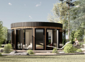 Фотография взята с сайта компании ХюггеНа эксплуатируемой кровле «Round House» есть возможность расположить шезлонги и купель. Отдельная душевая кабина и кухня в одноэтажном проекте с площадью 23,25 кв.м. и 29,86 кв.м. завершает список вещей, необходимых для комфортного проживания двоих человек. А наличие гостиной, спальной и детской комнат и нескольких санузлов в двухэтажной модели, общей площадью 60,23 кв.м., превращает строение в идеальное решение для современного дачного домика или бизнеса в сфере аренды жилья.