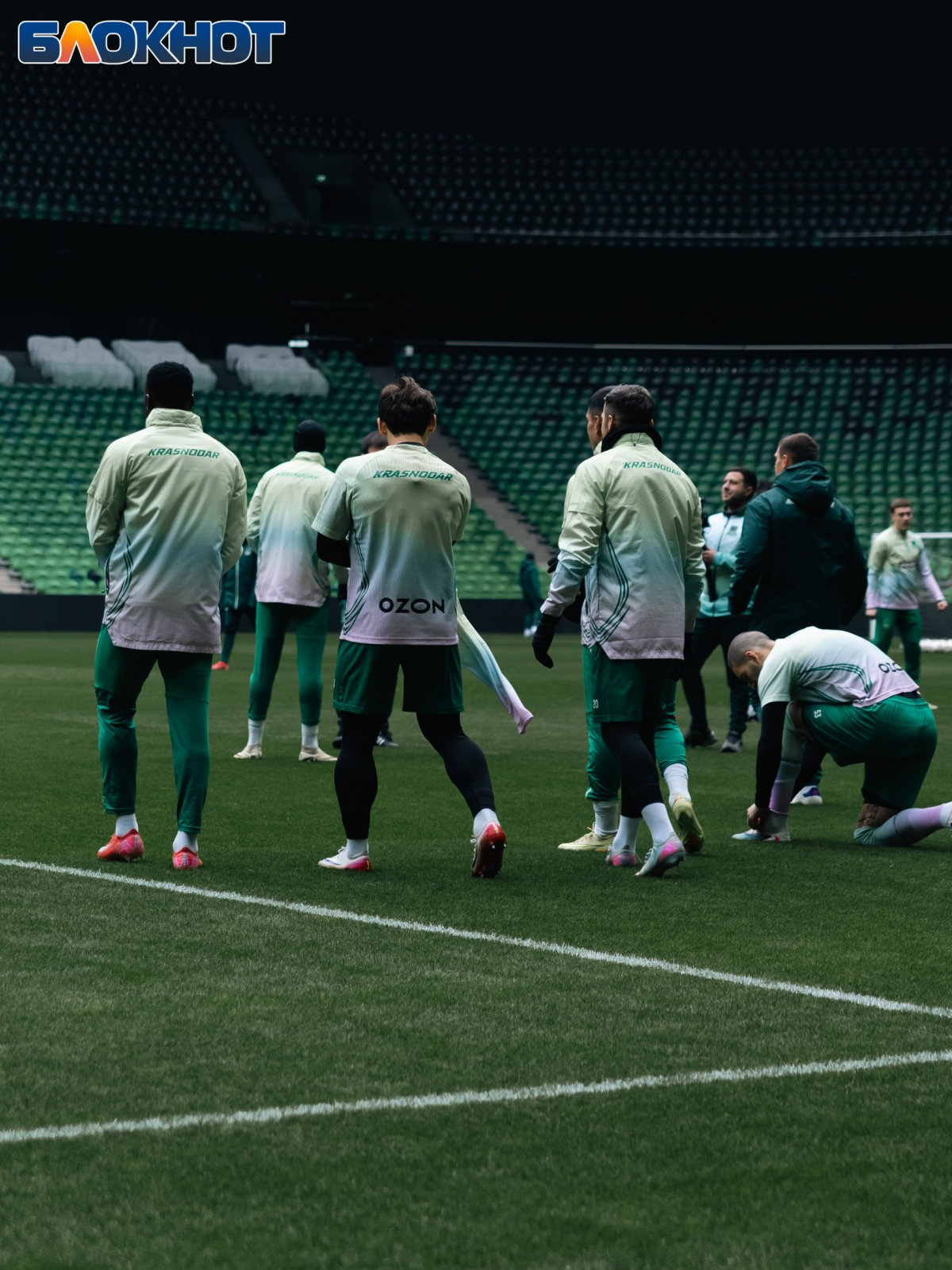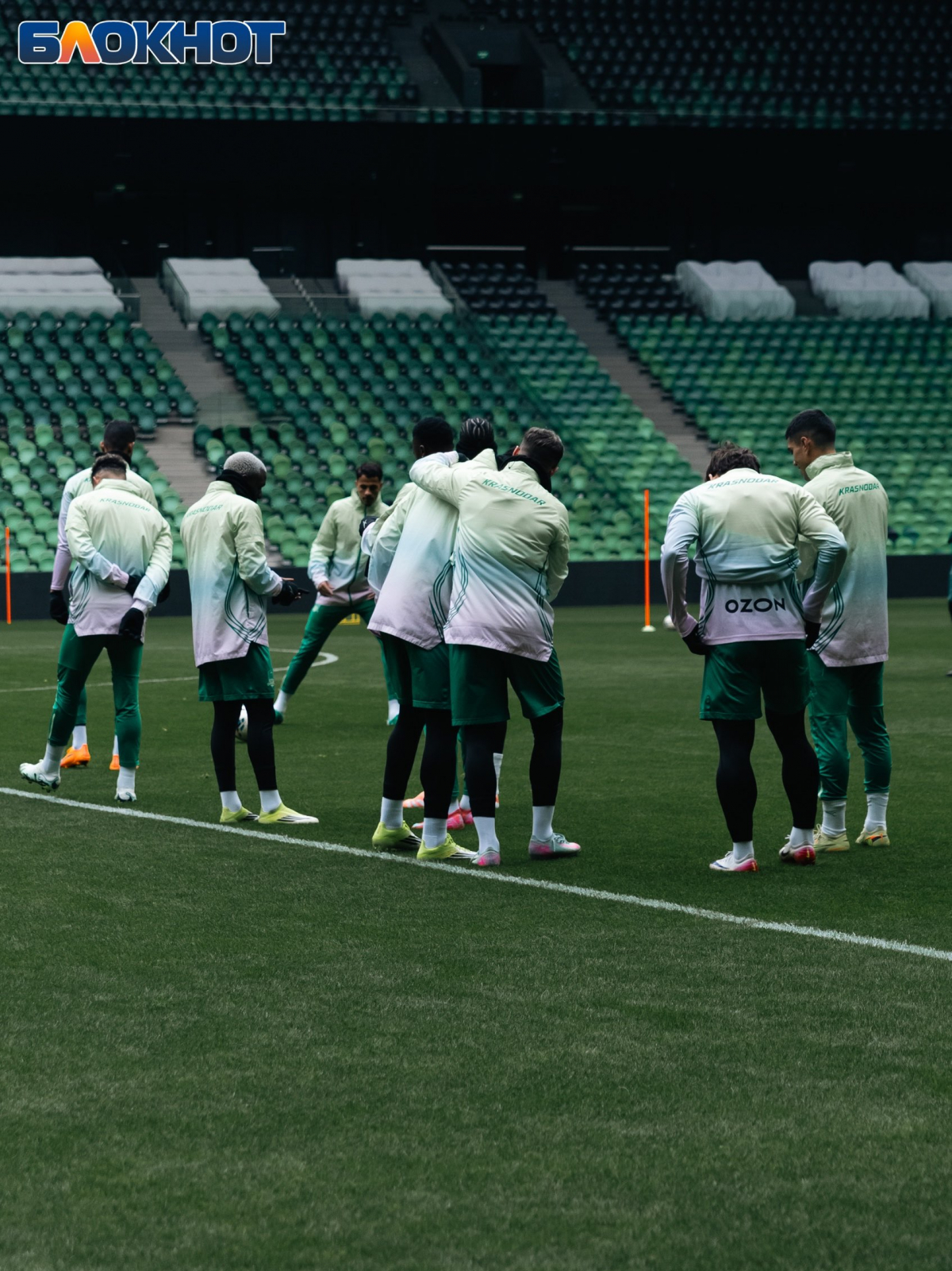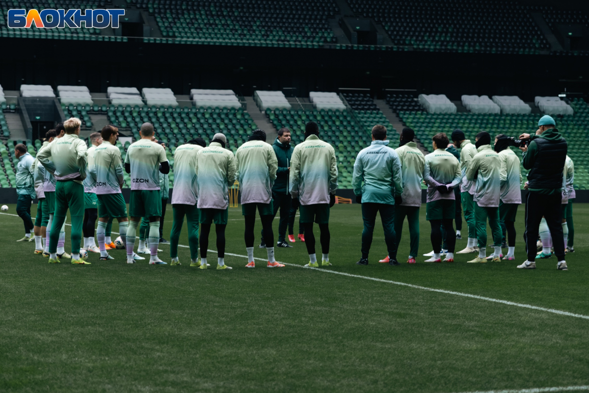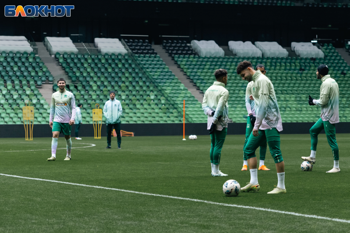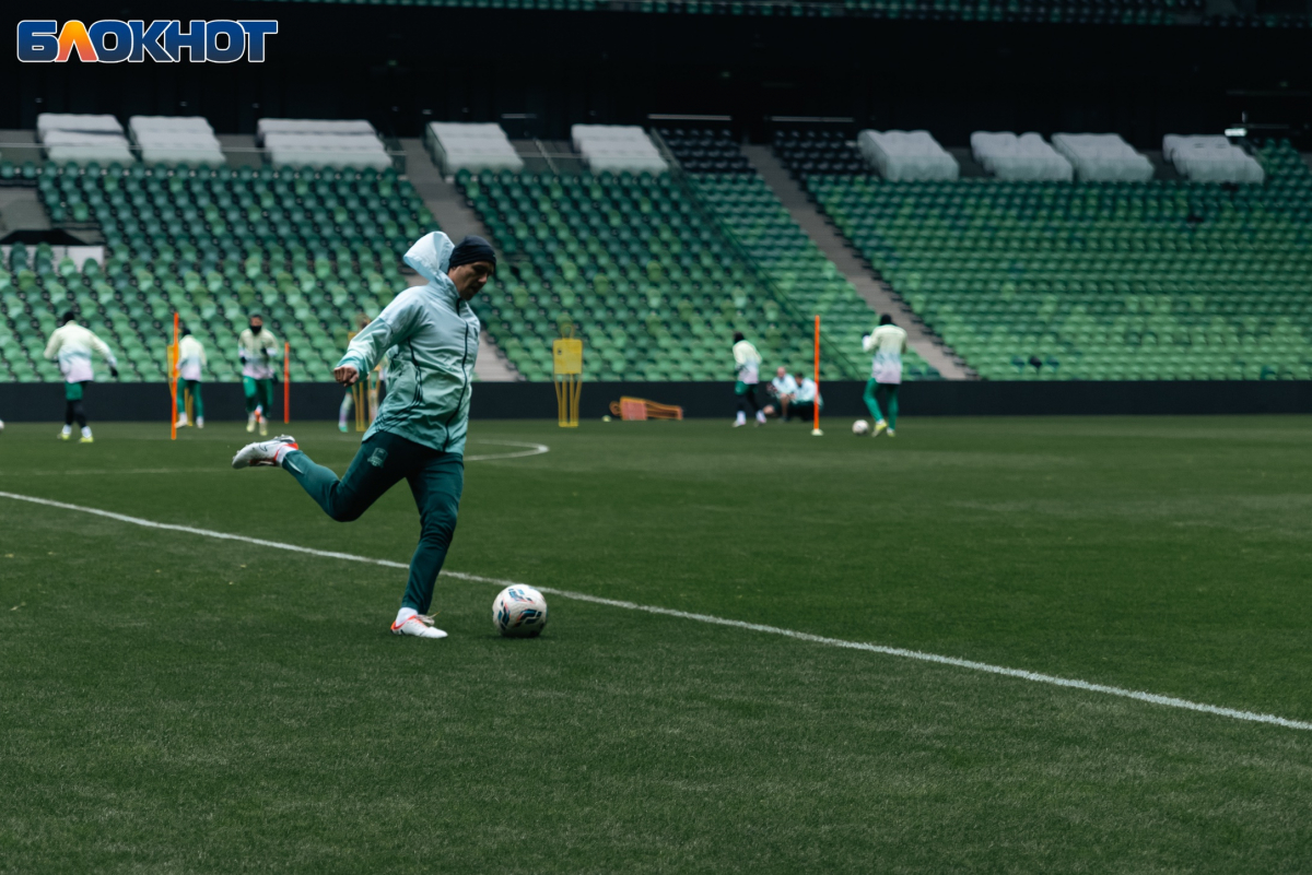 Корреспондент «Блокнота» также побывал на тренировке команды, где в начале не забыли поздравить вратаря - Станислава Агкацева. Футболист был признан лучшим спортсменом Кубани-2025.