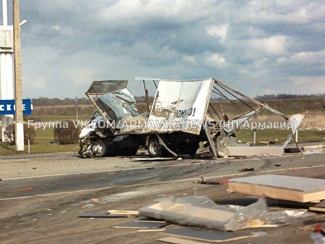 Днем 20 марта недалеко от Армавира возле поворота на село Успенское большегруз столкнулся с ГАЗелью. В результате серьезного ДТП, по сообщениям очевидцев, три человека погибли.