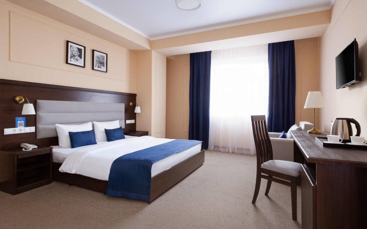 Богатый и разнообразный номерной фонд придется по вкусу гостям, желающим почувствовать максимальный комфорт и ни в чем себе не отказывать. От двухместного стандарта до большого люкса, состоящего из трех комнат с собственной кухней. Все номера оснащены эргономичной мебелью, местом для багажа, имеются сейфы.