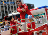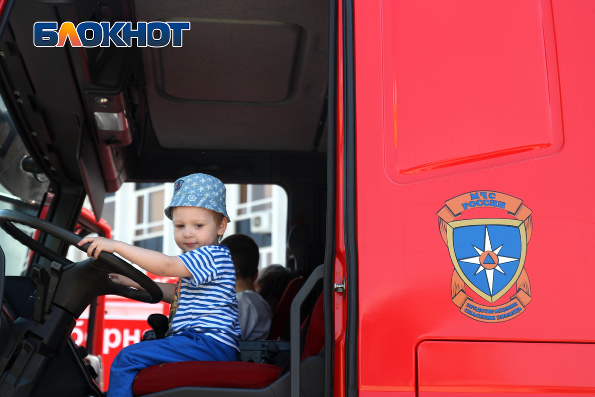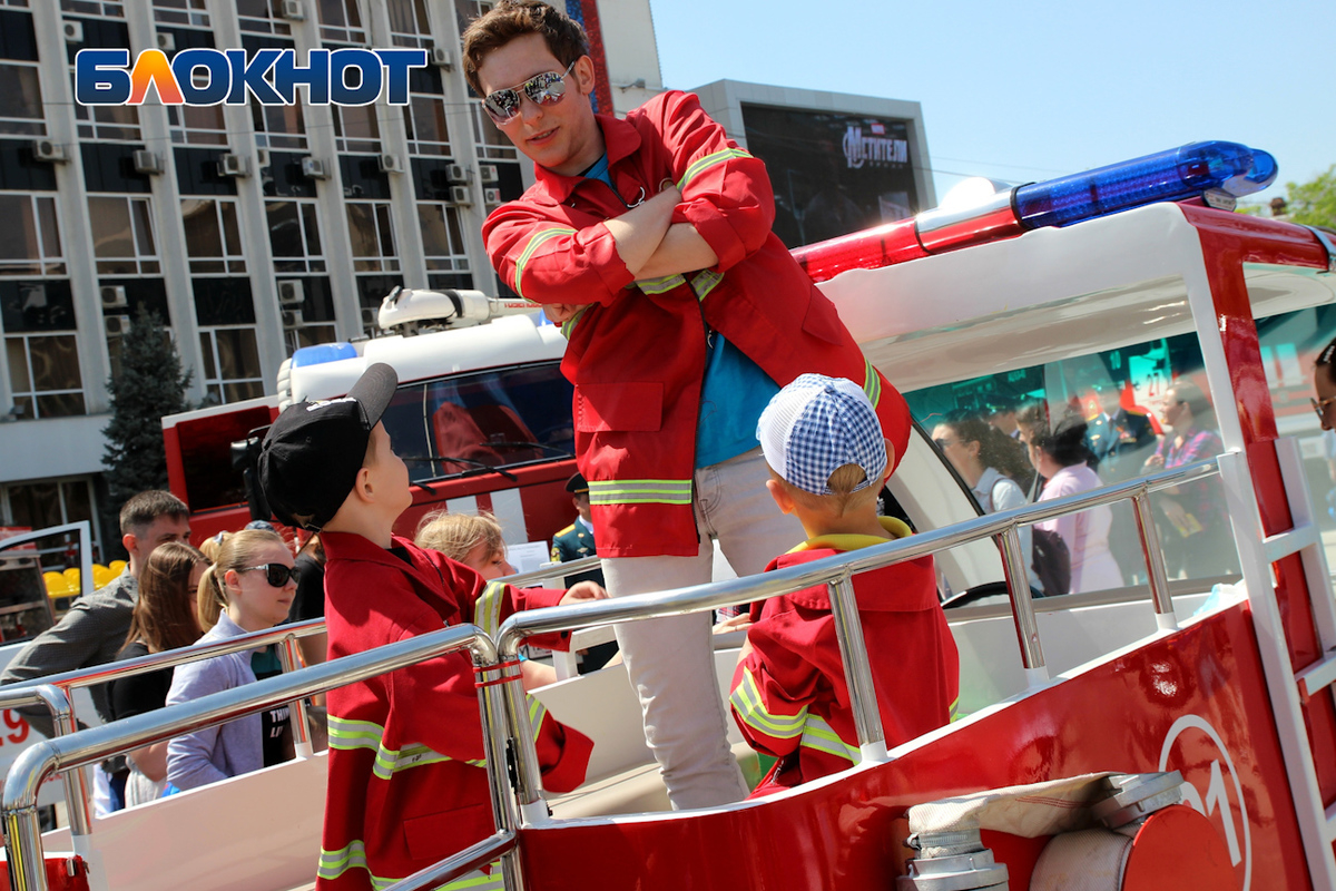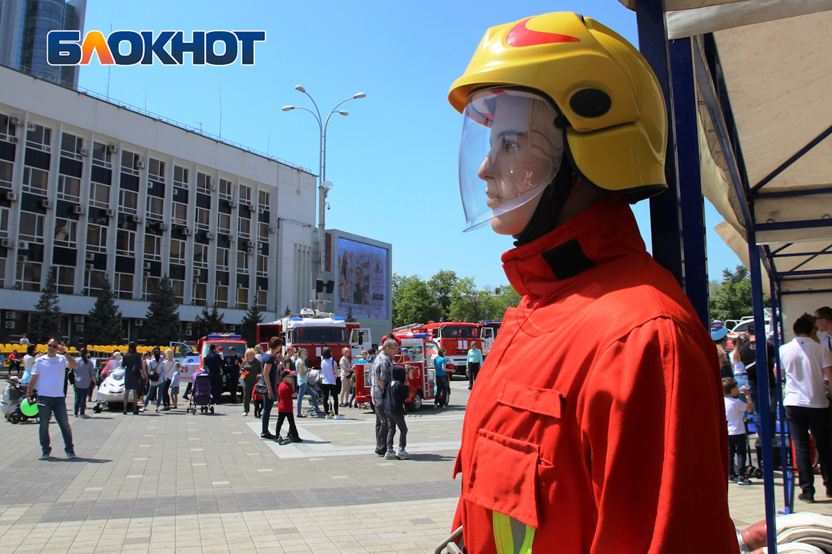 На Городской площади кубанской столицы этим днем собрались самые последние действующие образцы пожарной техники. Желающие могли не только потрогать красивые яркие автомобили, но и посидеть за рулем, заодно примерив форму огнеборца. Причем таковую выдавали не только взрослым, но и детишкам - по размеру.