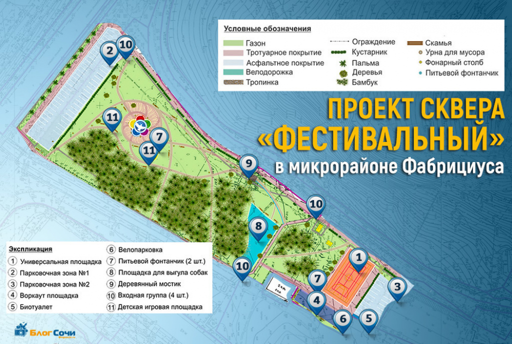 Проект сквера «Фестивального» на улице Фабрициуса в Сочи утвержден, сообщает портал «Архитектура Сочи». Новую зеленую зону намерены посвятить Международному фестивалю молодежи и студентов, который пройдет в октябре этого года.