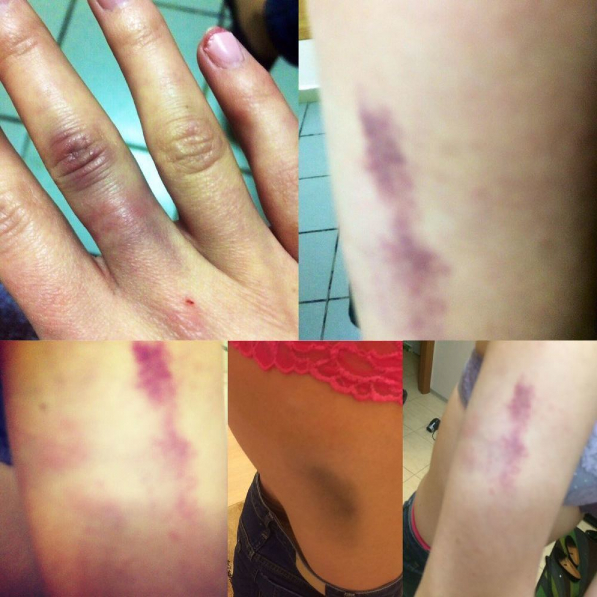 После происшествия она поехала в травмпункт, где зафиксировала все полученный травмы: у девушки множество синяков по всему телу, повреждена переносица. Чтобы восстановить справедливость она написала заявление директору заведения Максиму Борисенко, требуя уволить бывшего.