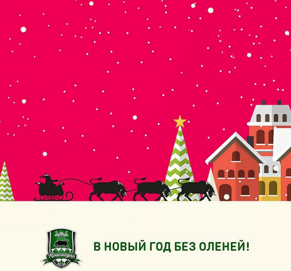 В твиттере Галицкий опубликовал открытку от своего футбольного клуба. На ней изображен Санта, которого везут быки. Внизу надпись: «В Новый год без оленей!».