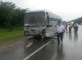 В результате ДТП погиб водитель легкового автомобиля «Хендай Акцент». В автобусе пострадавших нет. На месте происшествия работают сотрудники полиции.