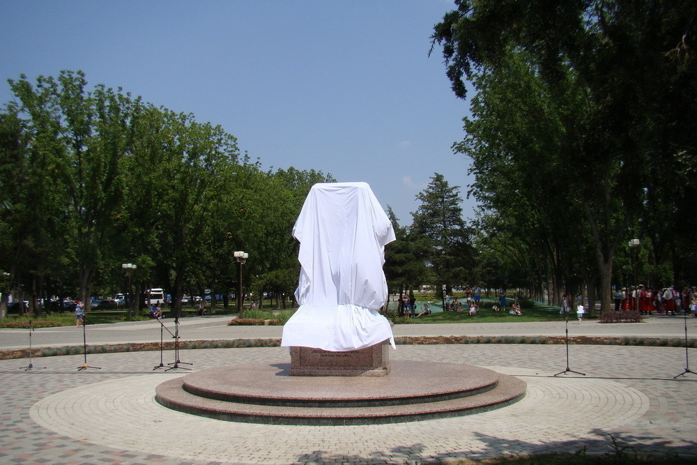 Создание скульптурной композиции осуществлялось на благотворительные средства при содействии Кубанского казачьего войска.