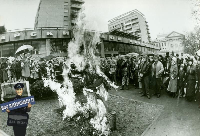 Сжигали чучело и угощали блинами: как отмечали Масленицу в Краснодаре 30 лет назад