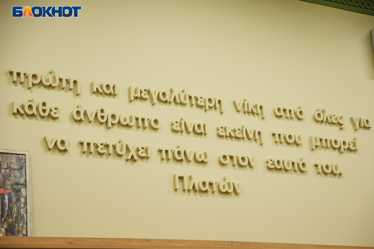 - Здесь провели колоссальные ремонтные работы, в которых задействовали более 150 человек. Удалось очистить и отреставрировать дореволюционную кирпичную кладку. Стрит-арт художники Андрей и Нина Кожуро создали на фасаде мурал по картине греческой художницы Нины Иоаниди. На нём изображены античный и православный византийский храмы, три грации или хариты, одно из традиционных ремёсел – гончарное дело и игра на греческой лире. Сюжет мурала отражает преемственность поколений и сохранение традиций, - рассказала исполнительный директор греческого культурного центра София Христафорова.