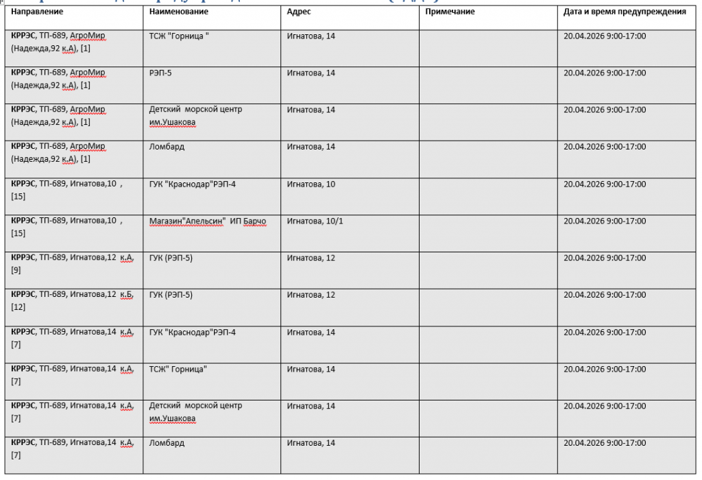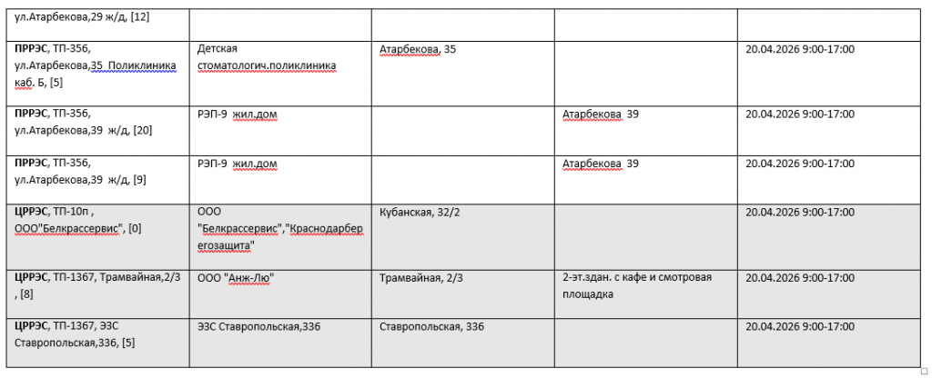 В Краснодаре 20 апреля ожидаются массовые отключения электричества. Без света останутся десятки улиц. Публикуем список адресов.