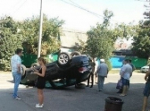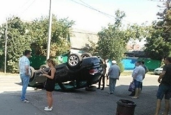 В Краснодаре автоледи перевернула «БМВ» на крышу