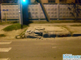 В Краснодаре автомобиль наехал на бетонную плиту и опрокинулся
