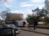 В Краснодаре машина перевернулась и вылетела на остановку