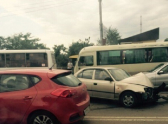 Предполагаемый виновник аварии выехал на встречную полосу движения и столкнулся с разу с несколькими автомобилями.