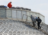6 мая на крыше Сенного рынка появились рабочие. Они спешно поднимали наверх большие мешки. Из них мужчины достали свернутые брезенты и накрыли ими стеклянный купол рынка.