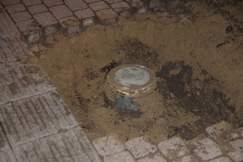 Тот самый замурованный фонарь под тротуарной плиткой на пересечении улиц Красной и Северной.В Краснодаре перед судом предстанет мастер участка ООО «Светосервис-Кубань».