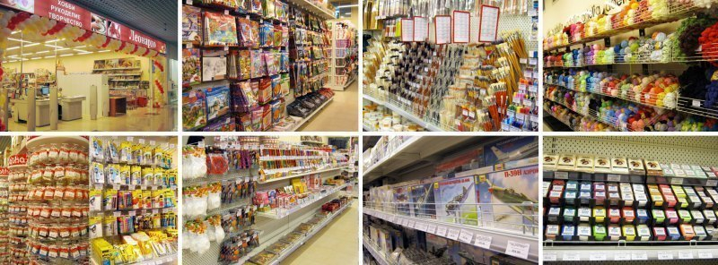 Ассортимент удивит и порадует любого покупателя. Рукодельницы найдут здесь всё для работы в любимой технике. Художники – море красок, холстов и кистей. Школьники – канцелярию и принадлежности для уроков труда и ИЗО. Родители – развивающие игры и наборы для детей. Хозяюшки – аксессуары для кухни и декора дома. Есть наборы по чеканке, выжиганию, моделированию и другим хобби, которые будут интересны мужчинам. И, конечно, много товаров для создания подарков своими руками.