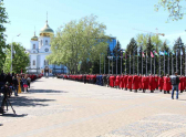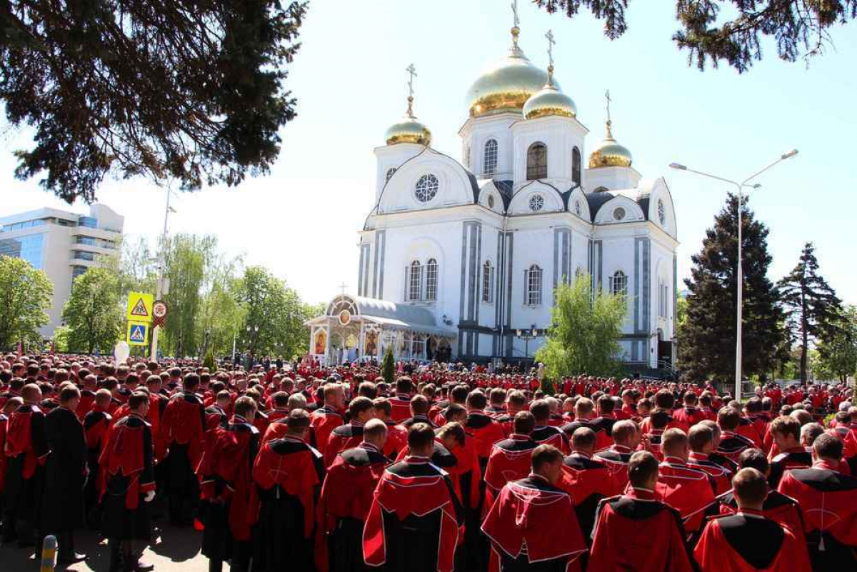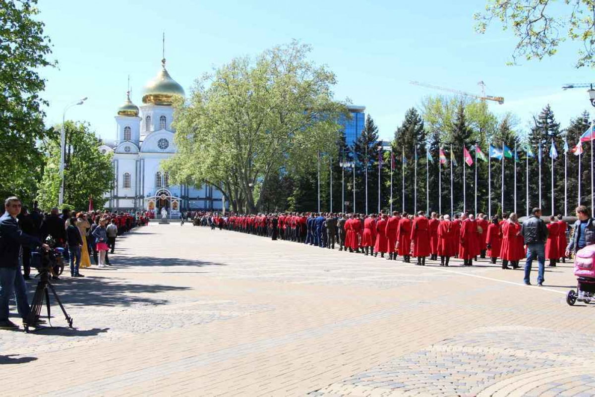 Мероприятие началось с торжественного молебна, который у стен войскового собора Святого благоверного князя Александра Невского, провел митрополит Екатеринодарский и Кубанский Исидор вместе с духовенством. После него казаки прошли маршем по улице Красной до Театральной площади, где и состоялся парад.