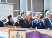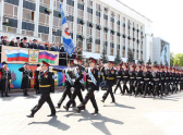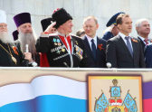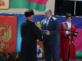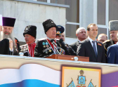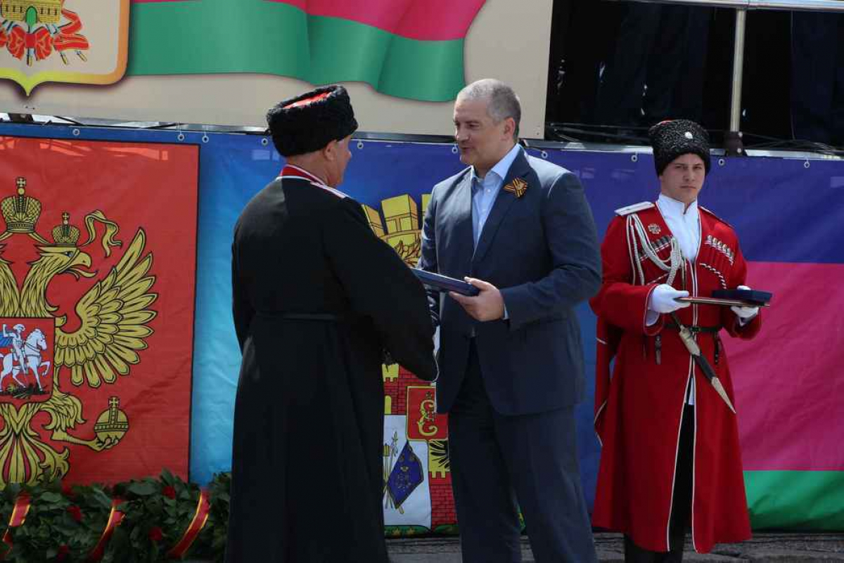 Тема участия казаков в крымских событиях сегодня поднималась много раз: об этом говорили и со сцены и из динамиков на улице Красной, пока по ней шли строем казаки. На юбилейные торжества в Краснодар прибыл и глава Республики Крым Сергей Аксенов. Он поздравил всех собравшихся и наградил некоторых казаков часами.