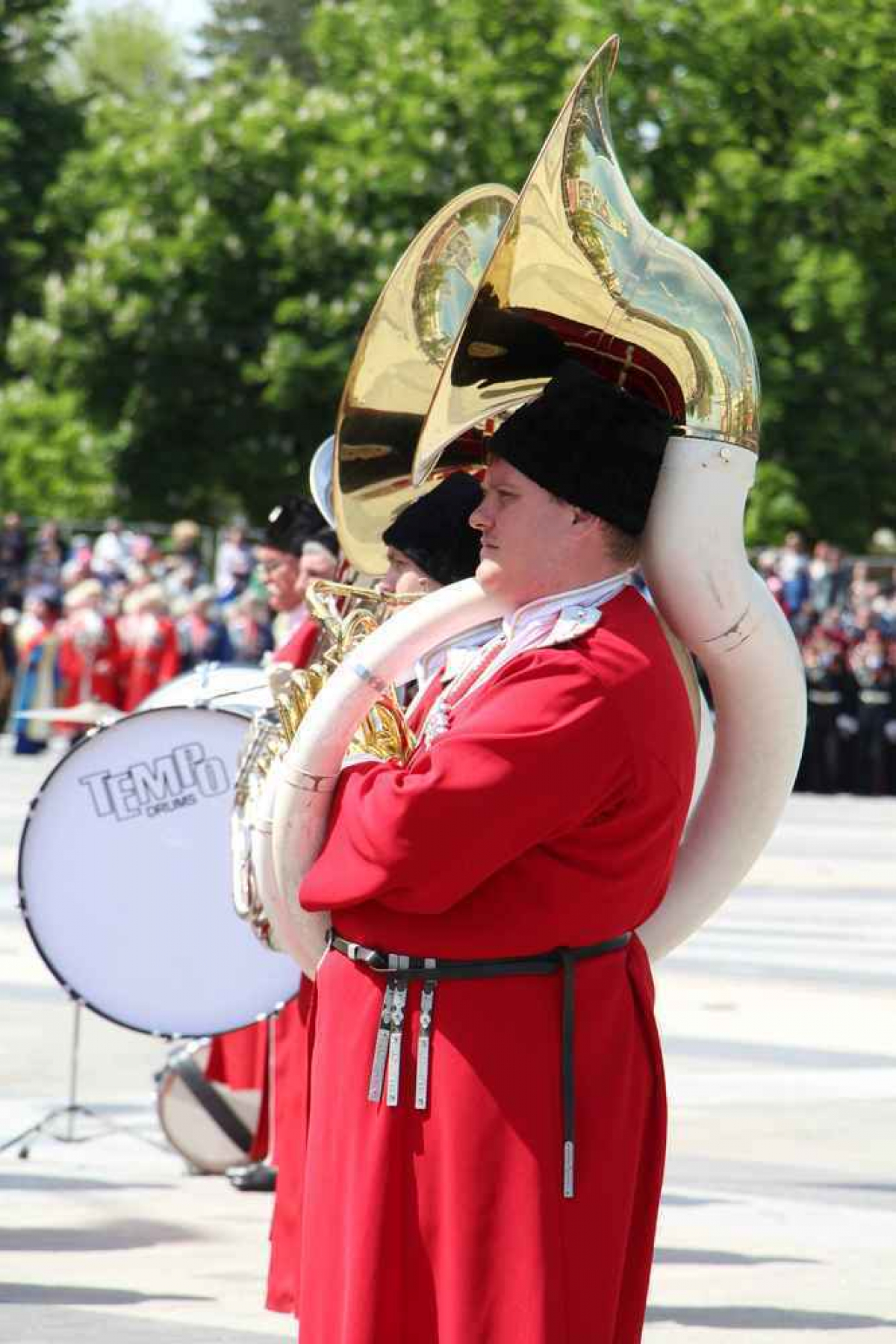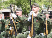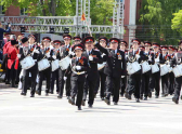 После официальной части по Театральной площади перед трибуной прошли около 10 тысяч человек.