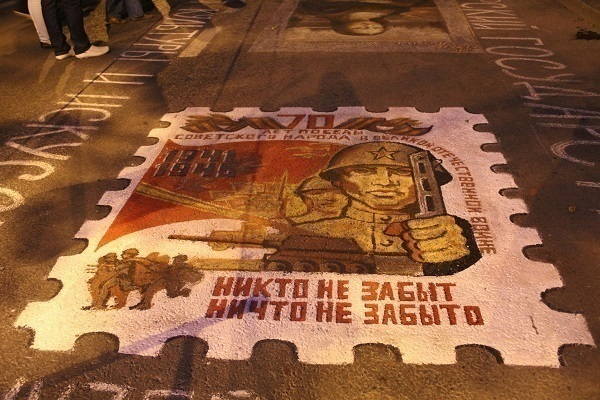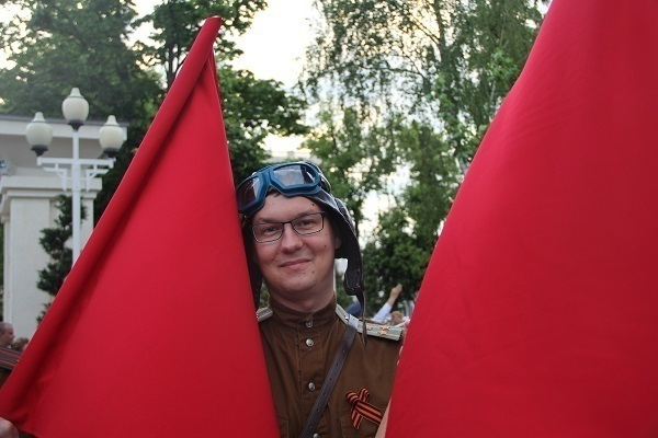 Международную акцию посвятили Великой Отечественной войне. Поэтому не обошлось без главного атрибута - Знамени Победы, который торжественно пронесли по Красной.