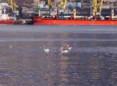 По словам очевидцев, птицы плавали в центре бухты, опасаясь подплывать к берегу и людям.