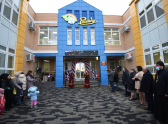 После торжественного перерезания красной ленточки дети с Дедом Морозом и Снегурочкой пошли петь и танцевать вокруг новогодней ёлки, а взрослые отправились на экскурсию по детскому саду.