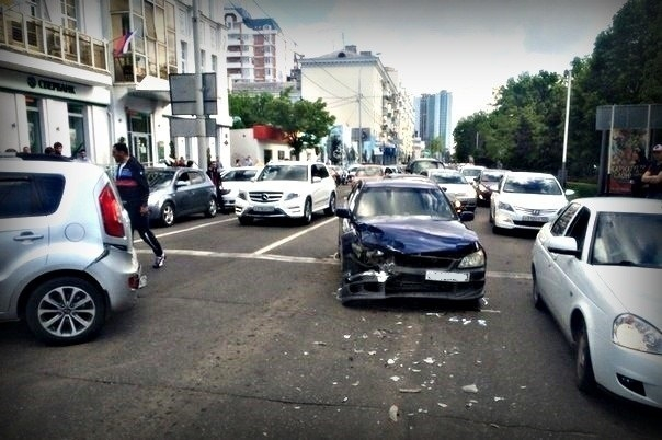 В центре Краснодара парень на «Лексус IS200» устроил крупное ДТП