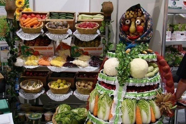 На выставке предприниматели собрали «овощную бабу». Во время осмотра экспозиций съедобное творение показали вице-губернатору региона Андрею Коробке.