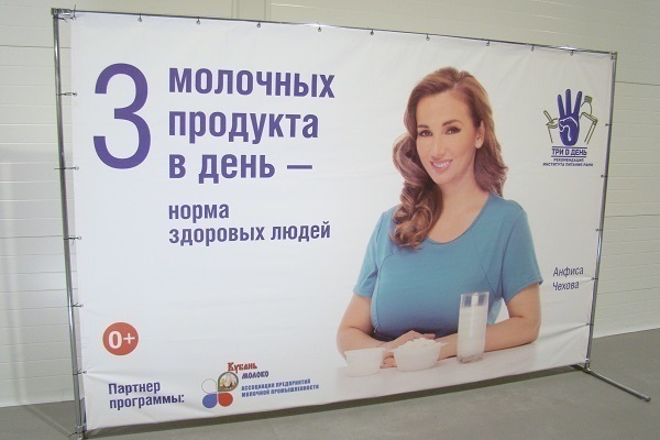 При входе всех встречал баннер с изображением пышногрудой Анфисой Чеховой. Известная телеведущая сообщала о пользе молочных продуктов. @bloknot_krasnodar.ru